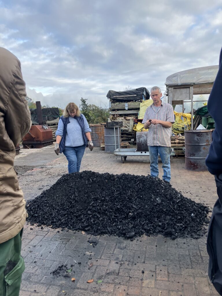 Not ones to admit defeat, the biochar day went ahead. Instead of using the Himalayan balsam to create biochar, the volunteers learnt all about how waste material from farms and woodlands – such as hedge cuttings and ash dieback – can be used. It is a great way of disposing of this waste material, and the resulting biochar can be used on the farm to help reduce nutrient run off into our precious waterways and create incredibly healthy soil systems.