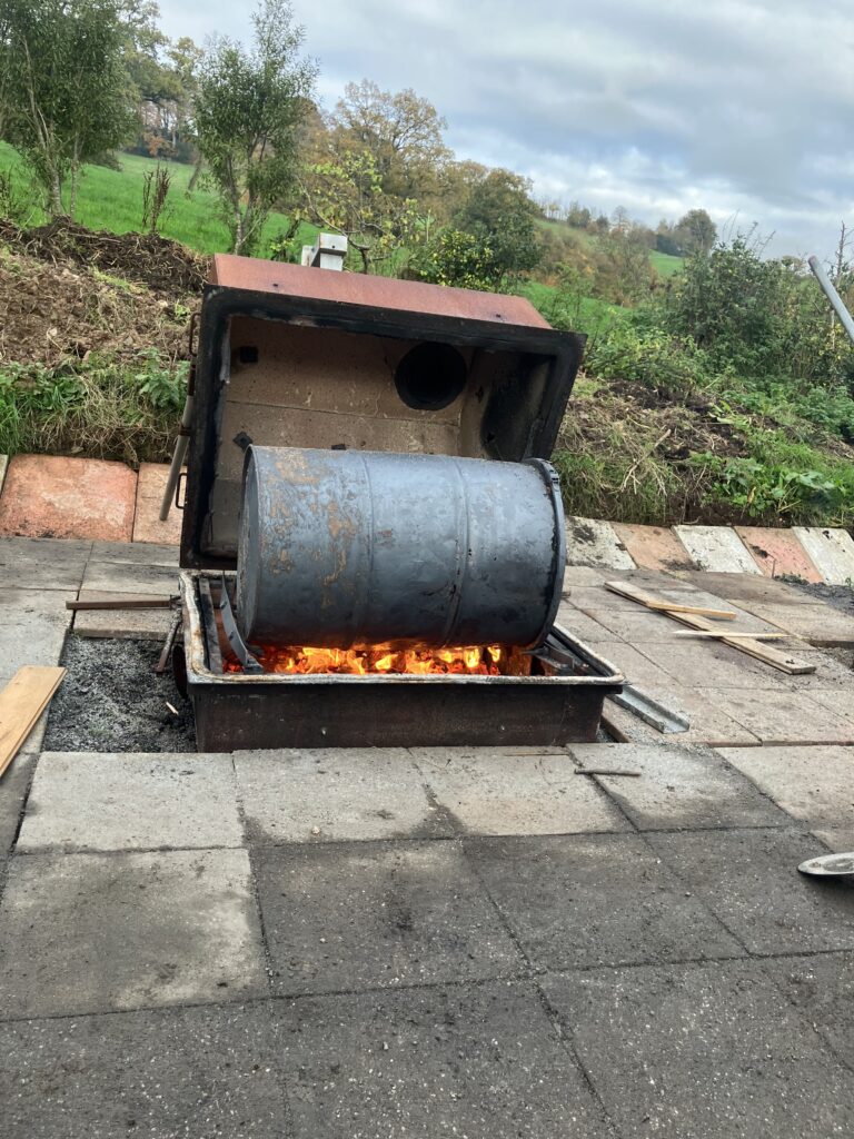 After six weeks or so of regular water content testing, the balsam was dry enough and ready to bake. The team rallied the volunteers again, ready to help feed the kilns and a date was set for the big biochar day. Sadly, it was not to be. The very sweet natured cattle, who the team had been so fond of during the farm visits, had other ideas. In just one sitting, they munched through the entirety of dry balsam, having escaped the electric fence – the only thing standing between them and their invasive prize. They say to never work with children or animals, and on this occasion, we would have to agree. Thankfully, the plant is good for them, and it got us thinking about a potential method for future balsam disposal!